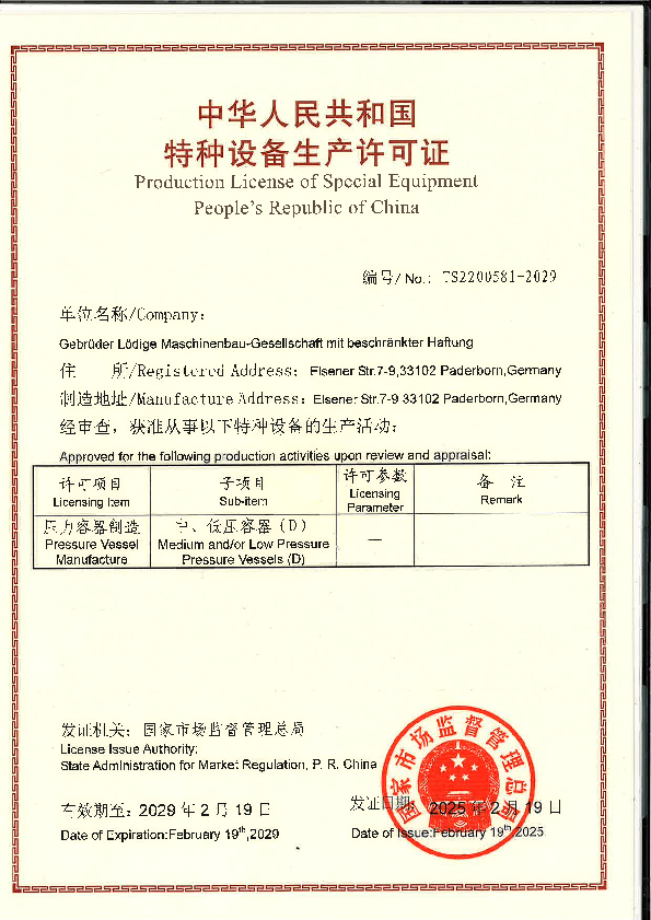 Certificate for the manufacture of pressure vessels in accordance with Directive 2014/68/EU Modules A, A2 and G and national regulations AD 2000 HP0.