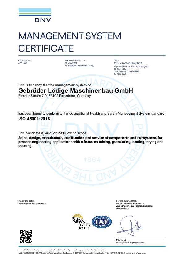 Our Quality Assurance System has been certified in accordance with Annex IV of Directive 2014/34/EU. This certificate is used to maintain our type approval for the manufacture of machinery that may be used in potentially explosive atmospheres.