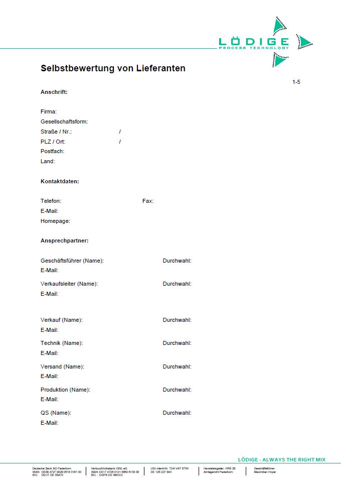 Vorlage Selbstbewertung von Lieferanten